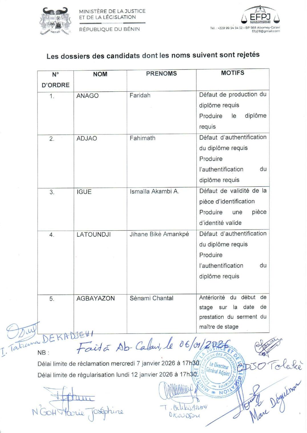 Lettre d'information et liste des candidats retenus et rejetés.pdf